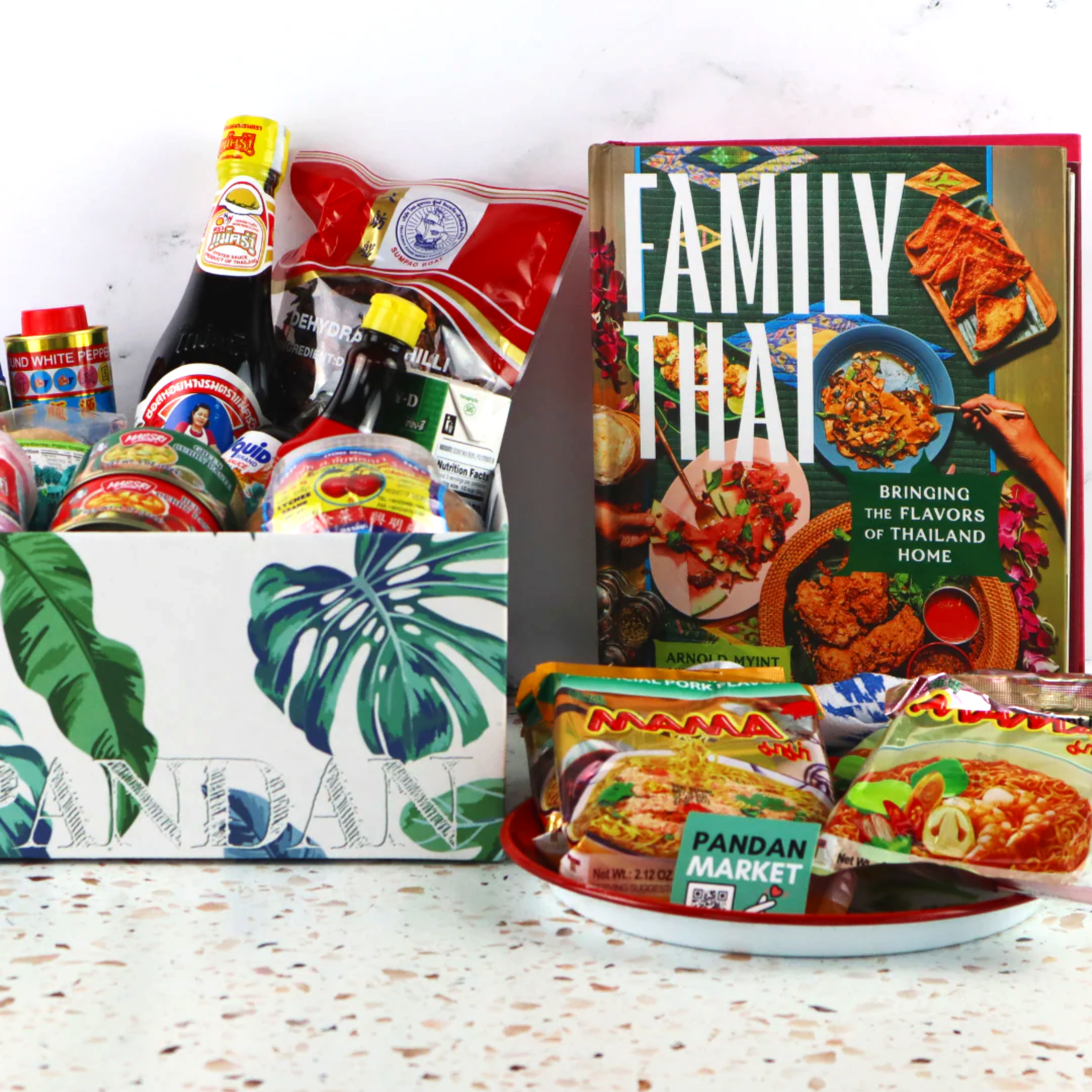 The box includes one hard cover copy of the Family Thai cookbook and a collection of unique Thai pantry products such as Arnold's favorite ground white pepprrrrrr. Packaged in Pandan Market signature tropical designed box ready for gifting and special occasions. Shipping Starts October 15, 2025
